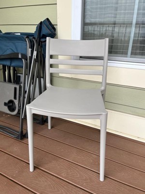 [This review was collected as part of a promotion.] What a gorgeous outdoor chair. We entertain frequently, so am always in need of extra seating. This chair cleans easily, is not hot in the sun, and stacks easily with other chairs! I need to order more to complete my set.