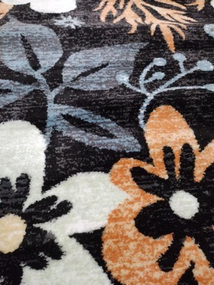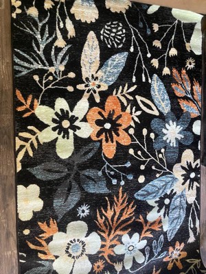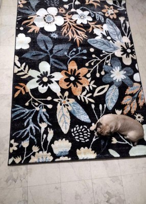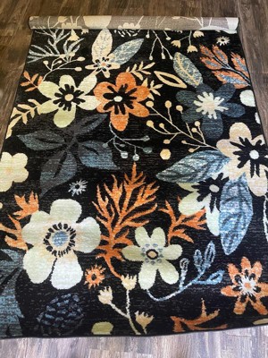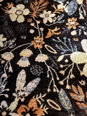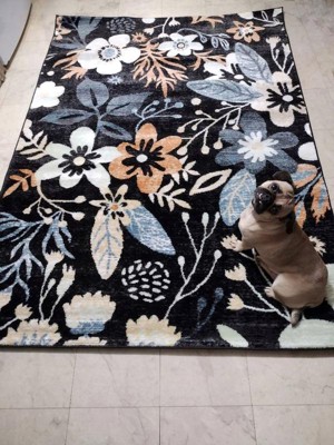 [This review was collected as part of a promotion.] I received this product for free in exchange for my honest review. I'm very impressed with this rug. At first I was worried that the colors would be too vibrant and overwhelming, but they are actually nice, muted tones. I love the fun, floral design and the colors look great against the black background. The pile is soft and fuzzy, which has attracted my dogs and they love sleeping on it. It feels like good quality, and we'll made. I got it delivered to me rolled up, so it had some ripples that needed to be flattened down, which was easy to do by reverse rolling it, as written on the instructions it came with. The underside is not non slip so I had to attach some corner grippers to keep it from lifting off my tile floor. I also noticed a chemical smell, but it was very faint and I was able to air it out. Overall I think it's a great, quality rug that is worth the investment. I highly recommend it!