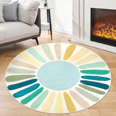 Colorful Machine Washable Area Rug, Non-Slip Indoor Carpet for Living Room, Bedroom, Modern Minimalist Front Door Mat with Sun Accent Design.