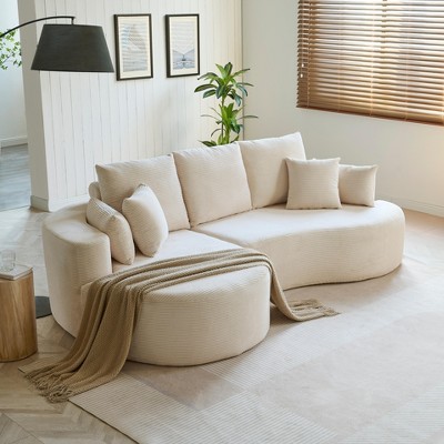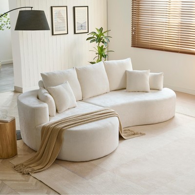 - SOFT PILLOWS: Featuring a gracefully curved seat, this sofa offers ergonomic seating. With 7 soft pillows included, you'll enjoy extra support and comfort, perfect for sitting, lounging, or napping, meeting all your relaxation needs.