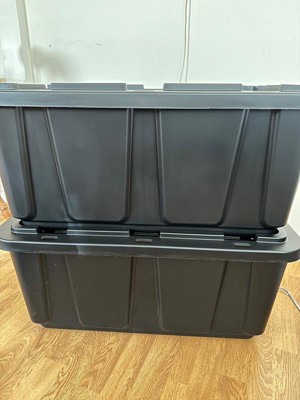 [This review was collected as part of a promotion.] The IRIS USA 27 Gallon Utility Tough Tote truly lives up to the name. These are HEAVY DUTY!! The design allows for them to be locked with a padlock or bungee together for added security. Our garage is looking so much more organized with these. I am planning on purchasing more this week!