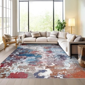 Abstract Machine Washable Rug with Non Slip Backing Ultra-Thin Non Shedding Stain Resistant Indoor Carpet for Living Room Bedroom Dining Room