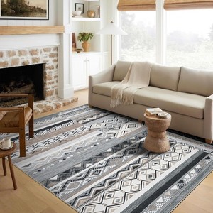 Acekool 5x7 Washable Rug – Vintage Geometric Non-Slip Carpet, Ultra-Thin Floor Mat for Living Room & Bedroom