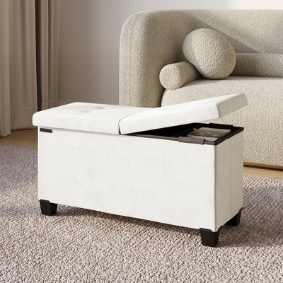 StorageBud Fabric Storage Ottoman Bench with Bins, 30-in Storage Bench for Bedroom End of Bed, Folding Foot Rest Ottoman, Cream