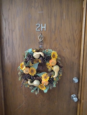 22" Autumn Wreath with Gourds, Pinecones, Sunflowers and Berries - National Tree Company