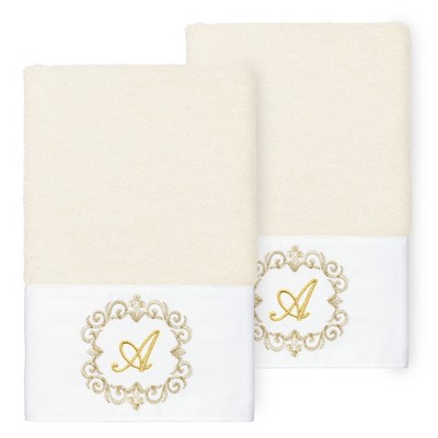 Linum Home Textiles 100% Turkish Cotton BRAELYN Embellished Towel Set - Latte - 2 Pcs Bath Towel