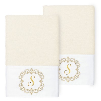 Linum Home Textiles 100% Turkish Cotton BRAELYN Embellished Towel Set - Latte - 1 Pc Bath 2 Pcs Hand Towel