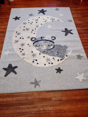 [This review was collected as part of a promotion.] Town & Country Play Good Night Moon & Stars Kids Area Rug, Soft & Plush , Calming Bedroom Rug is a large rug that is soft and perfect for a nursery or kids room .