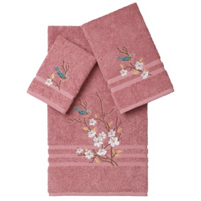 Linum Home Textiles 100% Turkish Cotton AIDEN Embellished Towel Set - Tea Rose - 3 Pcs Set