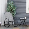 Bring contemporary style and classic comfort to your outdoor living space with the Outsunny patio rocking chair. The powder-coated steel frame and sling fabric seat add a soft textured touch to this strong, stylish rocker. The breathable, non-absorbent seat is quick-drying and fade-resistant. Lightweight and easy to move around, this rocking lawn chair can be easily rearranged to help you make the most of your backyard, whether in the sun or shade.