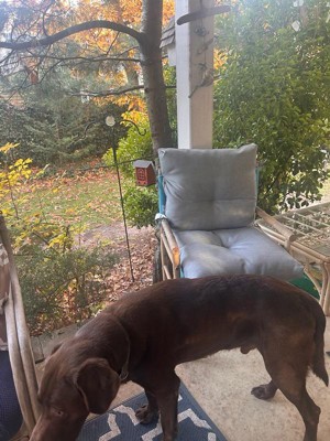[This review was collected as part of a promotion.] It is cold and snowy outside right now so it is difficult to review this but it seems comfortable- I have it on an indoor chair and also tried it to sit on the floor. It’s very thick but the padding is a bit uneven in the middle. I look forward to trying this on my outdoor furniture when it’s warm enough outside.
