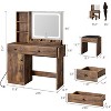 - 【Customizable LED Mirror】The vanity includes an adjustable LED mirror with three color modes—warm yellow, cold white, and warm white. Simply touch the button to switch modes or long press to adjust brightness. This feature ensures the perfect lighting atmosphere for any makeup look, tailored to different occasions.