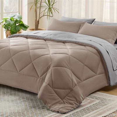 The Bedsure Bed in a Bag Contrast Color Solid set—a perfect blend of comfort and style designed to elevate your bedroom décor. This all-in-one bedding solution includes everything you need for a cozy and coordinated sleep experience. The set features a plush comforter, pillow shams, and a fitted sheet, all crafted from ultra-soft microfiber material that promises a luxurious feel against your skin.The comforter showcases a chic, diamond-quilted pattern in a sophisticated tone, adding texture and visual interest to your bed. The minimalist design, with its solid color scheme, ensures versatility, seamlessly complementing various interior styles, whether modern, minimalist, or classic.Designed for ease and convenience, the Bedsure Bed in a Bag is machine washable, making it easy to maintain its pristine look and feel. The high-quality materials are durable, ensuring long-lasting comfort, and the hypoallergenic filling provides a restful sleep, free from irritants.Transform your bedroom into a serene retreat with the Bedsure Bed in a Bag Contrast Color Solid set—where elegance meets everyday functionality. Whether you're revamping your bedroom or setting up a guest room, this bedding set is an excellent choice for achieving a polished, cohesive look.