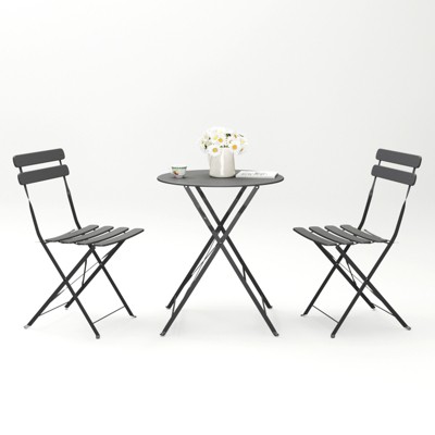 STURDY&DURABLE CONSTRUCTION: Powder-coated steel frame for rust-resistance. Perfect for outdoor use, even in coastal environments. The chairs can individually support up to 330 lbs. TREND DESIGN: Stylish color with wide and thick cross bar on the seat and backrest for both comfort and sturdiness. Plastic parts to prevent floor scratches are available. FOLDING DESIGN: Space-saving and easy to carry and store. The folding design allows for efficient use of indoor and outdoor spaces, ideal for bistros, balconies, and other areas. It's also convenient for portable use during camping or gatherings, offering a relaxing and leisurely experience. EASY MAINTAIN: Easy to install and fold,wipe clean with a damp cloth. Easy maintenance.