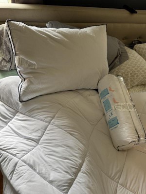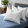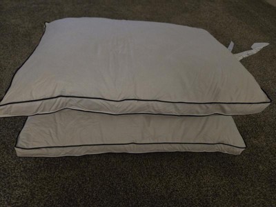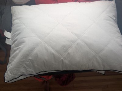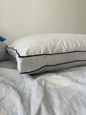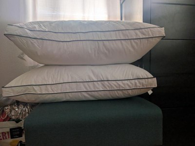 Experience exceptional comfort with this set of gusseted Goose Feather Down Bed Pillows. Designed to provide gentle yet supportive alignment for your head and neck, these medium-firm pillows help you enjoy a more restful sleep. The Classic style features 100% goose feather filling with a smooth polyester cover, while the Gusseted version combines 5% goose down and 95% goose feathers, encased in a soft 233-thread-count 100% cotton shell. Elegant navy piping and classic diamond quilting add a refined, durable finish. RDS-certified filling ensures responsible sourcing. Perfect for side and back sleepers, this versatile 2-pack is ideal for your master or guest bedroom. Spot clean or dry clean recommended.