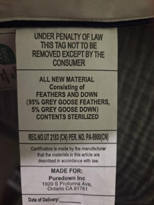Fill Material: 100% Goose Feather, 100% Feather