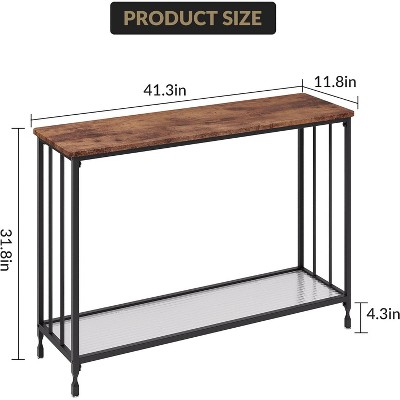 • NARROW CONSOLE TABLE: 33.5”L x 11.8”W x 31.9”H, providing an ideal storage solution that can fit in any narrow space. The 2 open shelves offer ample space for books, plants, lamps, decorations, and more. 4 Adjustable footpads are designed for leveling or uneven, protecting your tile and wood floors from scratches. The sofa table is versatile enough to serve as a foyer or entry table to welcome keys, hats, and other small items or as a behind couch table, Cleaning and maintaining it is a breeze.