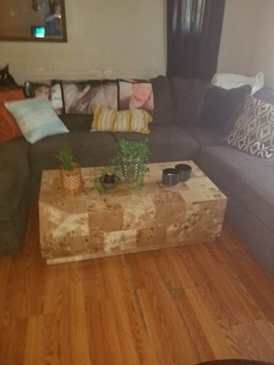 [This review was collected as part of a promotion.] Fun style and design if you like the raw wood vibe. Looks solid even though the underside is completely hollow. The surface area of the coffee table is quite nice. My only concern is the sharp corners. It probably wouldn't work if you have a small space or young kids.