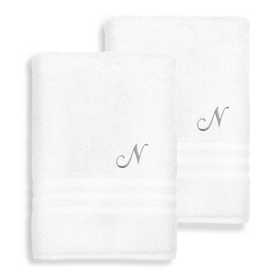 The Monica Embellished Towel Collection features an elegant metallic crest motif with your monogram embroidered on a crisp white border. These soft and luxurious towels are made of 100% premium Turkish Cotton and offer lasting absorbency and superior durability.