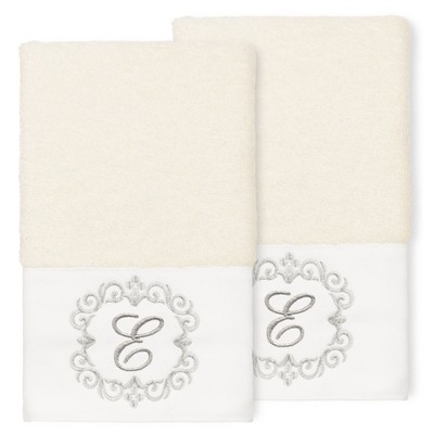 The Monica Embellished Towel Collection features an elegant metallic crest motif with your monogram embroidered on a crisp white border. These soft and luxurious towels are made of 100% premium Turkish Cotton and offer lasting absorbency and superior durability.