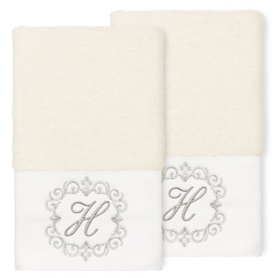 The Monica Embellished Towel Collection features an elegant metallic crest motif with your monogram embroidered on a crisp white border. These soft and luxurious towels are made of 100% premium Turkish Cotton and offer lasting absorbency and superior durability.