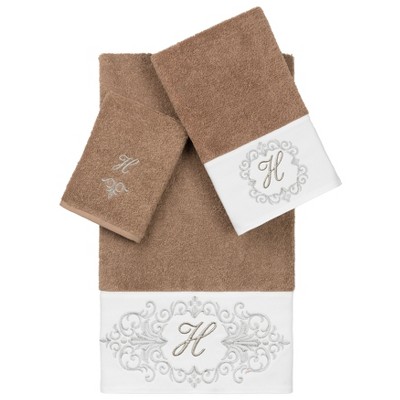 The Monica Embellished Towel Collection features an elegant metallic crest motif with your monogram embroidered on a crisp white border. These soft and luxurious towels are made of 100% premium Turkish Cotton and offer lasting absorbency and superior durability.