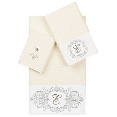 The Monica Embellished Towel Collection features an elegant metallic crest motif with your monogram embroidered on a crisp white border. These soft and luxurious towels are made of 100% premium Turkish Cotton and offer lasting absorbency and superior durability.