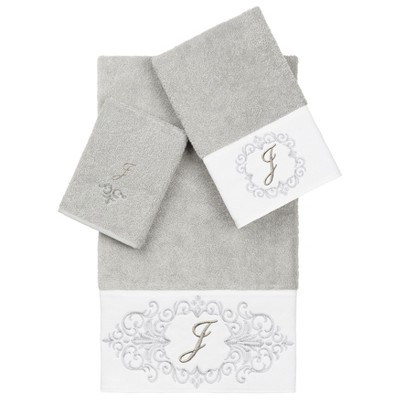 The Monica Embellished Towel Collection features an elegant metallic crest motif with your monogram embroidered on a crisp white border. These soft and luxurious towels are made of 100% premium Turkish Cotton and offer lasting absorbency and superior durability.