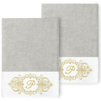 Linum Home Textiles 100% Turkish Cotton MONICA 2PC Embellished Bath Towel Set - Light Gray - P