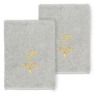 The Monica Embellished Towel Collection features an elegant metallic crest motif with your monogram embroidered on a crisp white border. These soft and luxurious towels are made of 100% premium Turkish Cotton and offer lasting absorbency and superior durability.