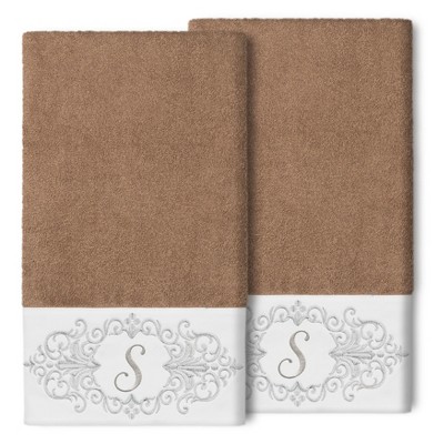 The Monica Embellished Towel Collection features an elegant metallic crest motif with your monogram embroidered on a crisp white border. These soft and luxurious towels are made of 100% premium Turkish Cotton and offer lasting absorbency and superior durability.