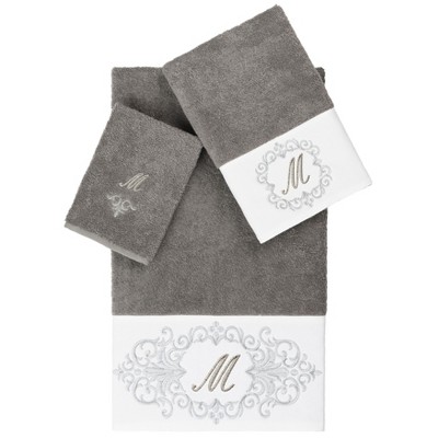 The Monica Embellished Towel Collection features an elegant metallic crest motif with your monogram embroidered on a crisp white border. These soft and luxurious towels are made of 100% premium Turkish Cotton and offer lasting absorbency and superior durability.