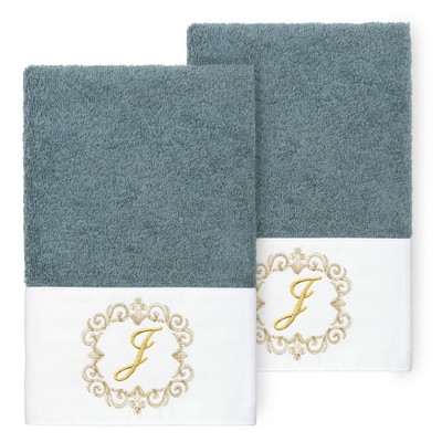 The Monica Embellished Towel Collection features an elegant metallic crest motif with your monogram embroidered on a crisp white border. These soft and luxurious towels are made of 100% premium Turkish Cotton and offer lasting absorbency and superior durability.