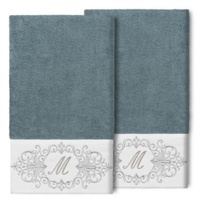 The Monica Embellished Towel Collection features an elegant metallic crest motif with your monogram embroidered on a crisp white border. These soft and luxurious towels are made of 100% premium Turkish Cotton and offer lasting absorbency and superior durability.