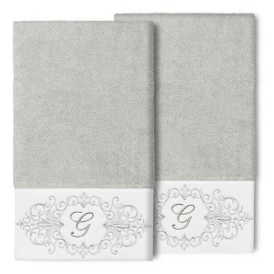The Monica Embellished Towel Collection features an elegant metallic crest motif with your monogram embroidered on a crisp white border. These soft and luxurious towels are made of 100% premium Turkish Cotton and offer lasting absorbency and superior durability.