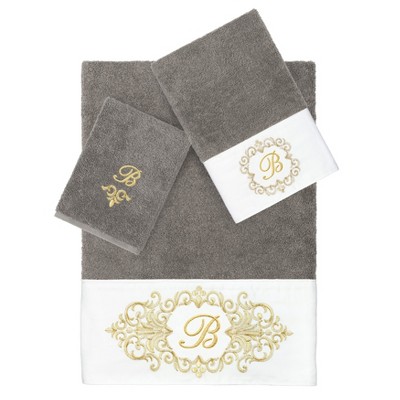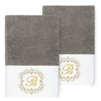 The Monica Embellished Towel Collection features an elegant metallic crest motif with your monogram embroidered on a crisp white border. These soft and luxurious towels are made of 100% premium Turkish Cotton and offer lasting absorbency and superior durability.