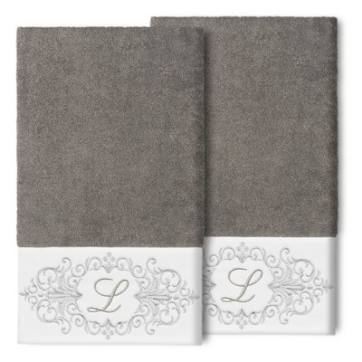 The Monica Embellished Towel Collection features an elegant metallic crest motif with your monogram embroidered on a crisp white border. These soft and luxurious towels are made of 100% premium Turkish Cotton and offer lasting absorbency and superior durability.