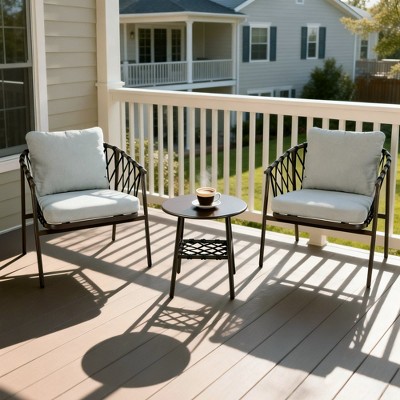 3-Piece Outdoor Patio Furniture Set with 2 Cushioned Rattan Chairs & Round Glass Coffee Table, Weather-Resistant Set for Backyard & Poolside, Beige