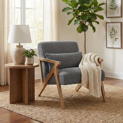 Karl Home High Back Solid Wood Armrest Backrest Iron Frame Linen Indoor Leisure Chair