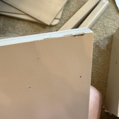 Was scratched and broken after putting together 800 pieces. This company is horrible I bought the bed as well and it was also scratched with no instructions.