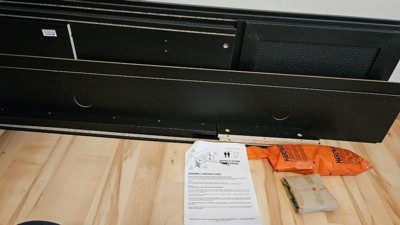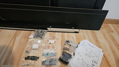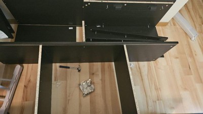 [This review was collected as part of a promotion.] So its a beautiful tv stand except there are a few things wrong with it, i put a picture up theres supposed to be a hole on one side of the stand that isn't there and on the bottom the direction show 1 thing but it isn't correct so I had to improvise leaving me 2 screws short luckily I had a few left over from my vanity to finish it otherwise very nice