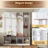 - 【Multifunctional 4-in-1 Design】Combining the functions of a seating bench, shoe cabinet, hanging rack, and storage cabinet into one unit, this hall tree meets diverse needs, whether you require a place to rest or ample storage, and is ideal for use in entryways, mudrooms, living rooms, or any indoor space.