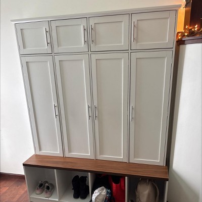 This entryway cabinet presents an elegant and harmonious design, with its walnut bench exuding a warm, inviting glow that effortlessly meshes with diverse color schemes and decor styles. The simple yet stylish hooks and handles lend it a modern, fashionable edge, making it a seamless fit for contemporary spaces. Functionally, it excels as a 4-in-1 marvel, combining the utility of a seating bench, shoe cabinet, hanging rack, and storage cabinet. With 8 cabinets and 4 bottom open storage compartments, it offers expansive room to stow shoes, bags, hats, and more, transforming cluttered areas into tidy, organized spaces. Ideal for entryways, mudrooms, living rooms, or any indoor setting, it maximizes practicality. Crafted from premium MDF, it features a sturdy frame and a bench capable of supporting up to 180 pounds, ensuring long - lasting durability. The anti-tipping devices further enhance safety, eliminating concerns about accidental toppling. In sum, this entryway cabinet masterfully balances aesthetic appeal, versatile functionality, and robust construction, making it a must - have addition that elevates both the look and practicality of your home.