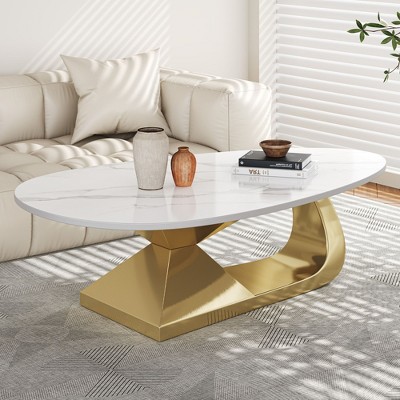 PAGED Modern Sintered Oval Stone Tabletop Coffee Table with Stainless Steel Base,Elegant and Durable Living Room Centerpiece