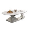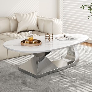Product Name: PAGED Modern Sintered Oval Stone Tabletop Coffee Table with Stainless Steel Base,Elegant and Durable Living Room Centerpiece,Silver Base