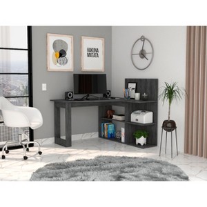 PAGED Home Office Desk Simple Modern L-Shaped Writing Desk with 5 Open Storage Shelves for Study