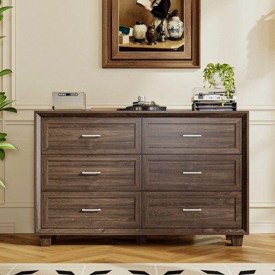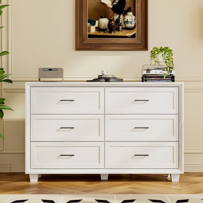 Famapy Farmhouse Buffet Storage Cabinet Dresser Accent Cabinet with 6 Drawers, White Wood Dresser for Bedroom, Living Room, Hallway
