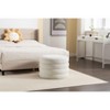 Product Name: Sapphtopaz Modern 22.44" Round Ottoman Small Velvet Upholstered Vanity Stool with Storage and Wood Shelf Accent Stools for Living Room, Bedroom, Cream