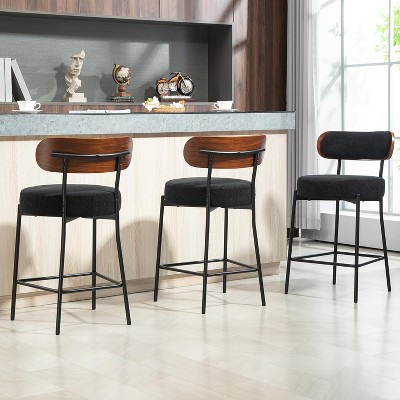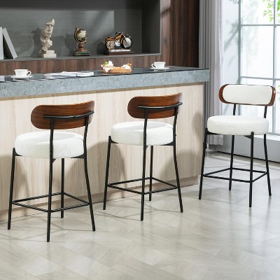 DYHOME 24 Inches Counter Height Bar Stools with Boucle Fabric Upholstered Pad Wood Back, for Kitchen Island, Cafe, Set of 3
