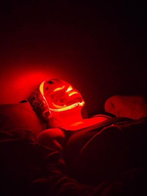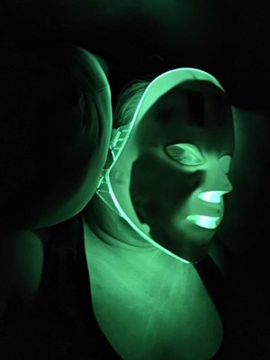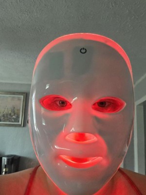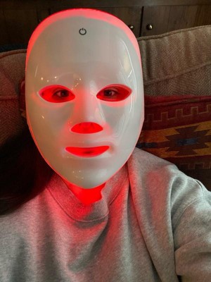 [This review was collected as part of a promotion.] I have a lot of opinions on this LED mask now that I've been using it for awhile. First off, I don't like the facial structure, it didn't line up with my face well. I don't have a particularly wide nose, but I felt as if it were closing my nostrils when I tried to keep my nose in the nose part. It almost feels suffocating at times. Also, the straps hit in a weird spot on my ears. I found the best way to use this was laying down on my back and resting it on my face instead. I moved it slight down to fit my anatomy better. All that being said, i do enjoy using this. I lay in my bed and put on a meditation before bed. It has become part of my night routine. I also rest it on top of my head like a baseball cap during the day to try and stimulate some hair growth. I like that it has multiple settings (colors) and you can pick one that rotates through them all.